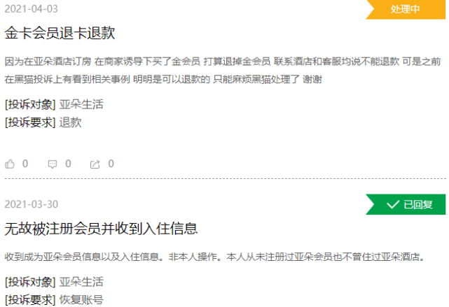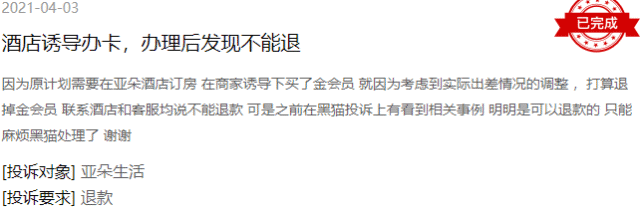 且在2020年亚朵会员复购率达到48.7%,表现出很强的客户粘性。不过在投诉平台上,却有不少消费者投诉亚朵存在诱导开会员、开卡不能退、无故被注册会员等情况。