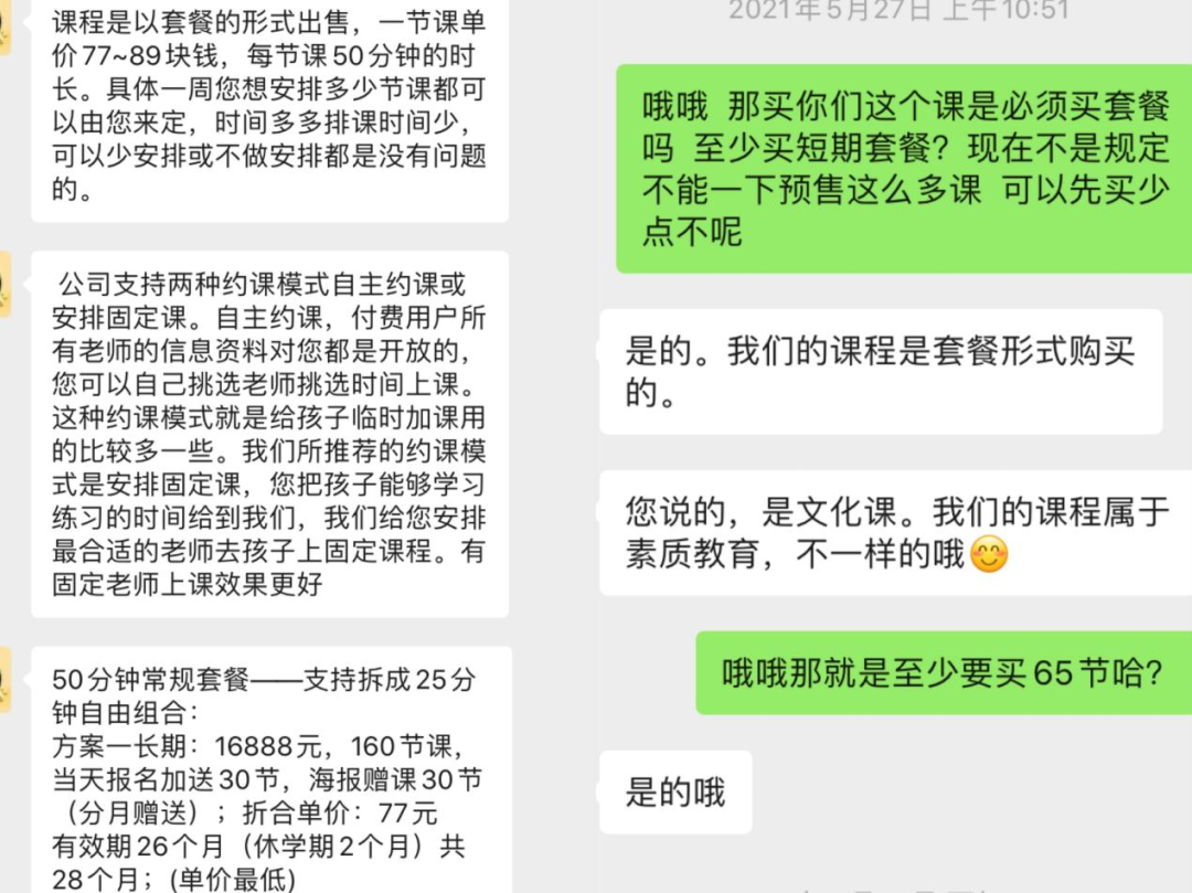 不过,这类线上陪练平台虽然师资不够稳定,课程却要打包贩卖。