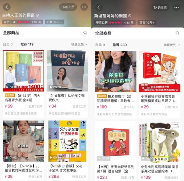 当然,即使是童书垂类的头部主播,其销售量级也无法与美妆服饰等领域主播一场动辄几千万的GMV相媲美,童书在直播间尚属小众。