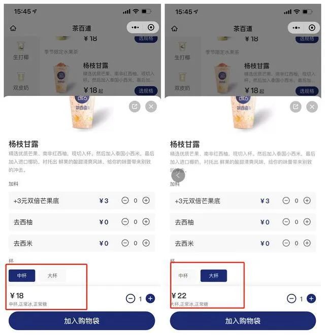 但一点点则会贵一些。在六一期间其推出的迷你款为两杯起售,例如奶绿装芒两杯为17元、迷你四季奶青两杯为11元、迷你波霸奶茶两杯为11元,两杯“Mini杯”等价于一杯正常装,但奶茶量却比正常装少。