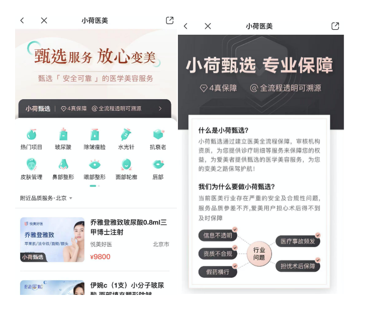 小荷医美类似于美团丽人/美发频道下的医学美容栏目,主要提供撮合交易,不过前者以项目而非商家的形式展示。