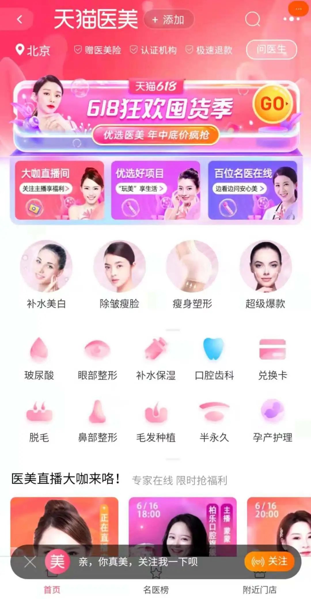 除了在线购药,医美大概是医疗领域增长较快的领域之一,且医美产品客单价较高,显然能对GMV增长助益不少,互联网大公司无不在此落子。