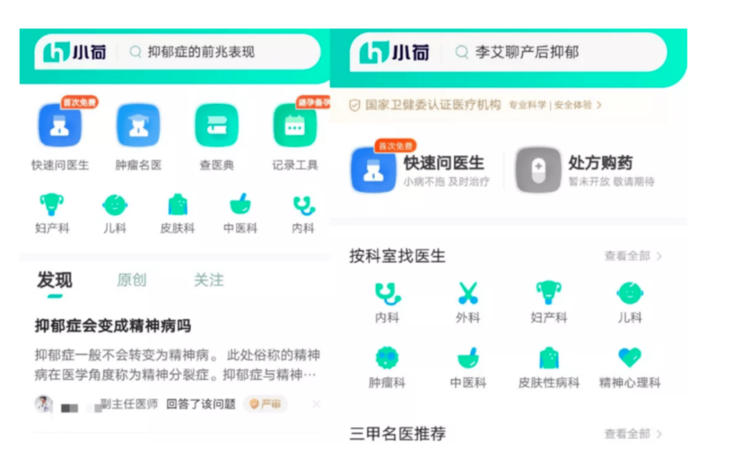 更名后初期,小荷主要提供“快速问医生”、“查医典”等信息服务,“处方购药”功能尚未开放。今年年初,百科名医已经以“小荷医典”的新品牌名出现。