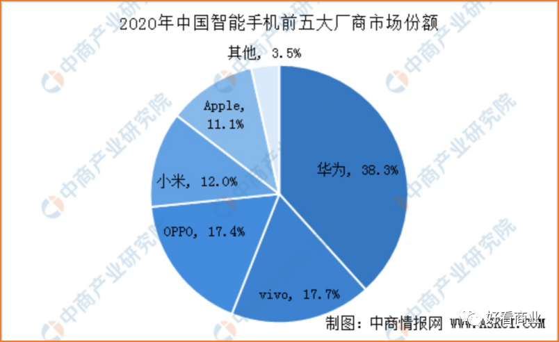 据IDC的统计,2020年,在遭遇各种狙击的情况下,华为智能手机出货量依然高达1.25亿台,在国内市场以38.3%的份额占据全年榜首。
