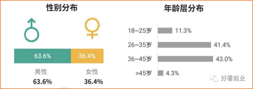 中年蔚来车主中又有多少是中年男性呢?极光iAPP的上述统计称,蔚来用户的男女比例为63.6%:36.4%,也就是中年男性用户是顶梁柱。仅36岁以上的用户占比就达到47.3%。