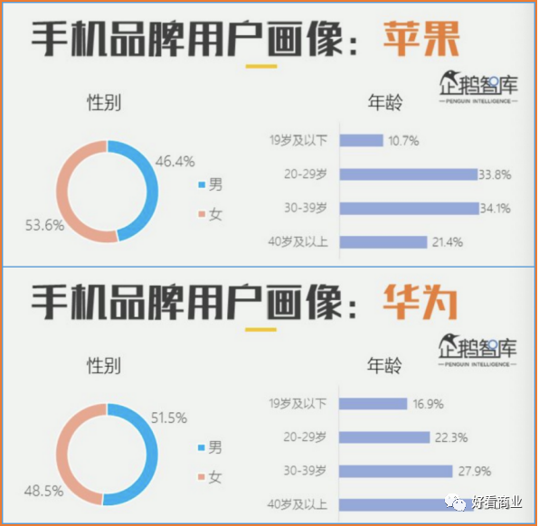 上述报告显示,51.5%的华为用户为男性;30+以上的用户占比60.9%,远超苹果。