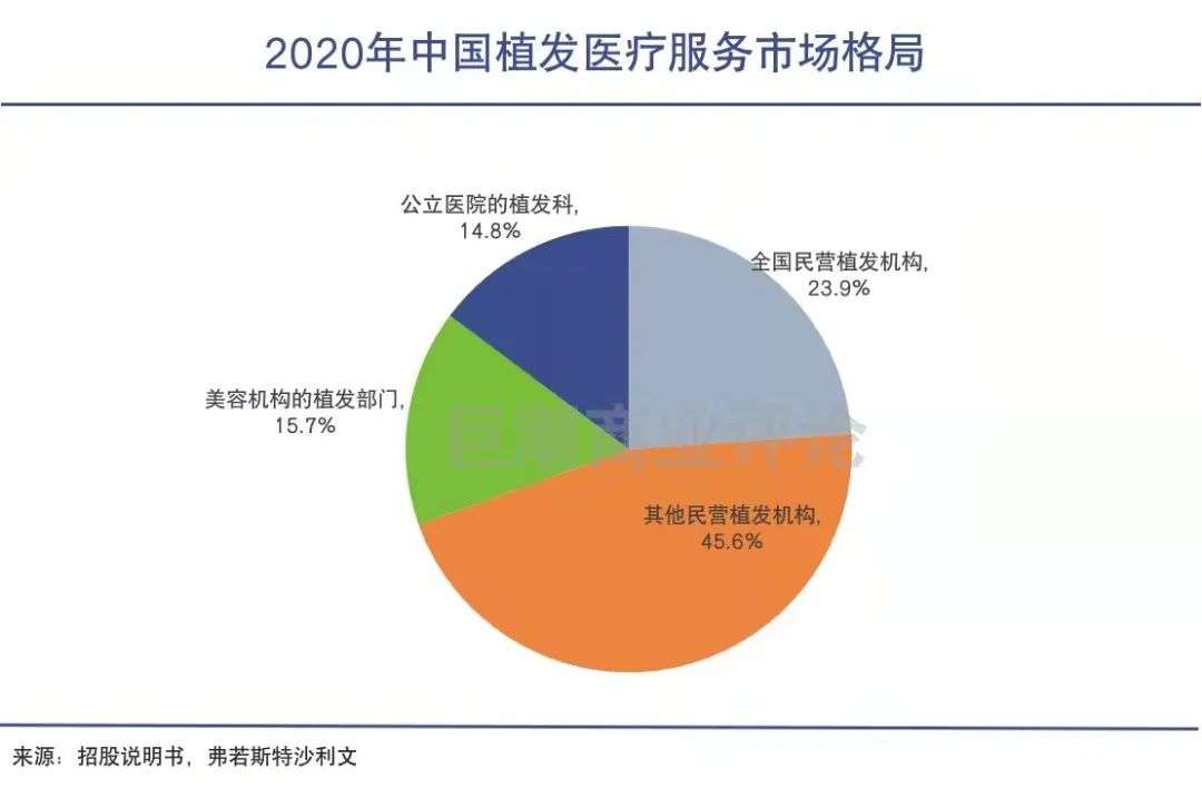 公立医院的植发科则大约占据剩余14.8%的市场份额。