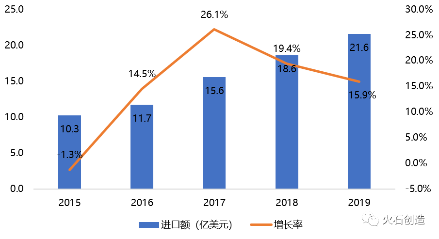 2019年中药进口规模为21.55亿美元,五年间复合增长率达16%,实现快速增长。