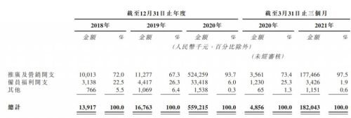 2018、2019年、2020年与2021年第一季度,青瓷数码的推广及营销开支分别为1000万元、1130万元、5.24亿元与1.78亿元,占同期总收入的10.2%、12.7%、42.7%与36.9%。