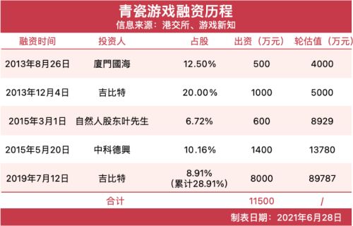 据公开信息,今年4月,青瓷数码与广西腾讯、阿里巴巴灵犀、上海幻电与吉比特订立一项股份转让协议。吉比特分别转让了青瓷数码的3.37%股权,予广西腾讯、阿里巴巴灵犀及上海幻电(即合共为于青瓷数码的10.11%股权),代价各为1.01亿元(或合共为3.03亿元)。