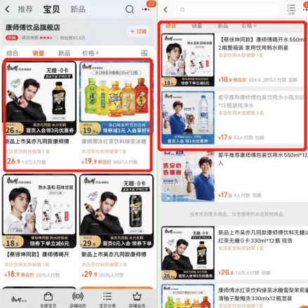 目前,在天猫的康师傅饮品旗舰店,销量最高的就是康师傅的“标准版”和“无糖版”冰红茶。而在矿泉水这一子类目中,康师傅“喝开水”这一新品的销量的甚至已经超过了康师傅此前推出的瓶装纯净水。