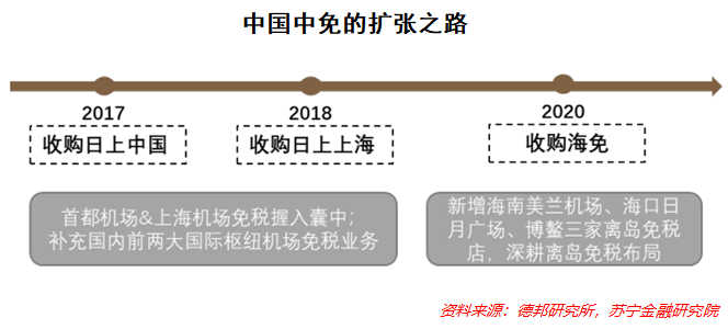 2020年以前,我国只有7家公司拥有免税经营资质,分别为中免、日上免税行(日上上海&日上中国)、海免、珠免、深免、中出服、中侨,其中日上中国、日上上海与海免先后都被中免收购。免税牌照的特许经营权叠加体量的积累,让中免充分享受到了先发优势的红利,并成长为今天的行业龙头老大。