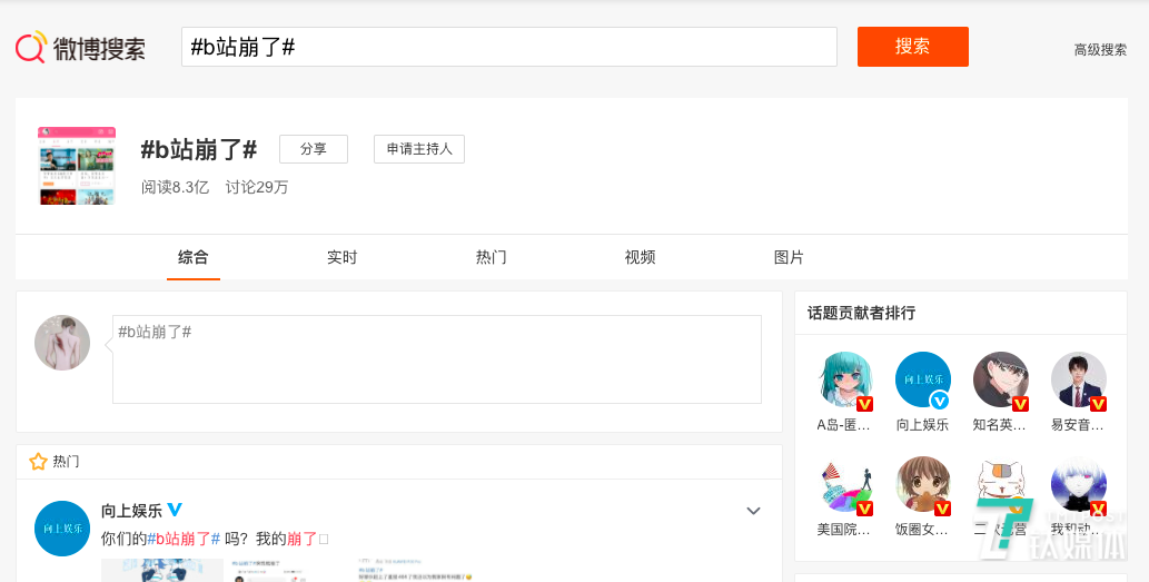 跟着B站一起崩了的,还有B站的用户群体们。B站崩了没多久,#b站崩了#的话题冲上了微博热搜第一。