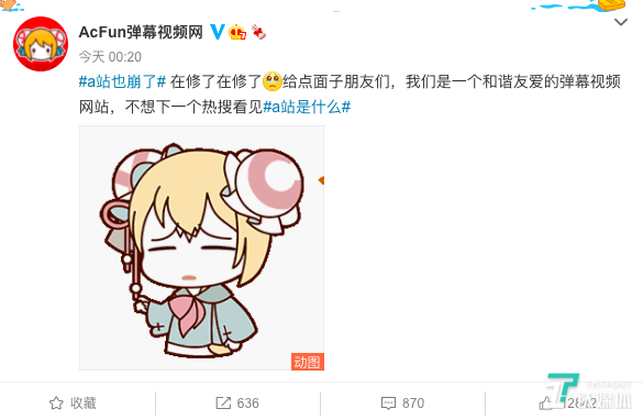 为此,A站官方微博在凌晨回应称,“在修了在修了”。