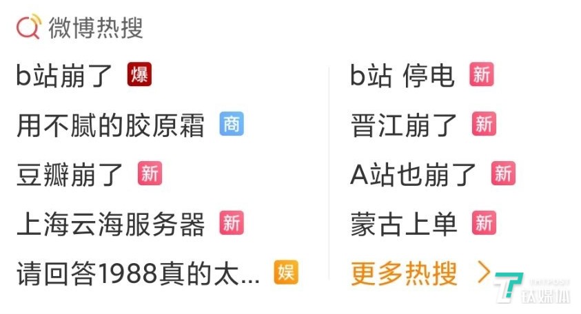 钛媒体App发现,昨晚与B站崩了一起冲上热搜的话题还有#A站也崩了#,#豆瓣崩了#。