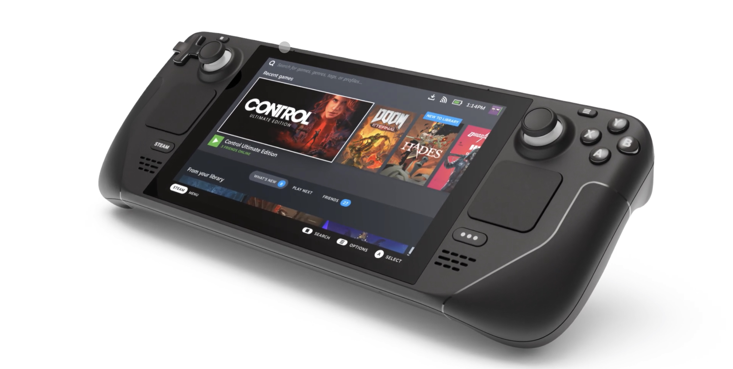 首先是便携性的问题。与动辄四五斤的笔记本电脑相比,PC掌机不足以一公斤的重量控制其实已经非常不错了。但与不足300g的手机相比,PC掌机显然还有很大的进步空间。以最新发布的Steam Deck为例,接近700g的重量已经和一台12.9英寸的iPad Pro差不多了。这个重量虽然不算太重,但长期捧在手里玩始终还是有坠手的感觉,最好还是在有依靠的情况下使用。
