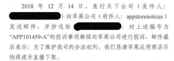 投诉——2019年1月,广东省广州市南沙区人民法院发出了一份“停止投诉”裁定书,要求斗鱼立即停止对虎牙在苹果应用商店的投诉行为。