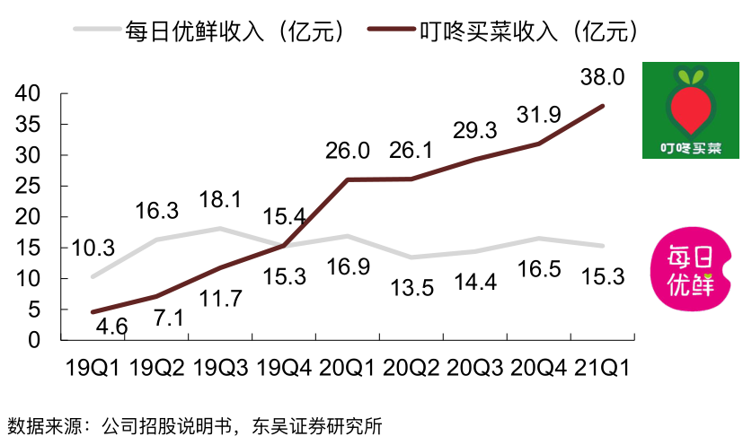 在徐新看来,叮咚买菜在同模式的竞品中有独特优势:蔬菜品类、前置仓高密度分布、高渗透率带来了高使用频次;配送足够快,更能满足用户厨房场景的需求。