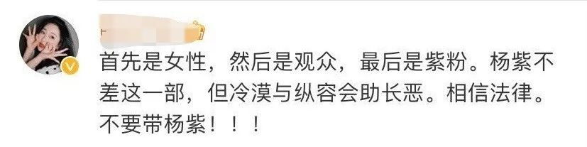 更多人表示,我们首先是女性,然后是观众,最后是紫粉。杨紫不差这一部,但冷漠与纵容会助长恶。相信法律,不要带杨紫。