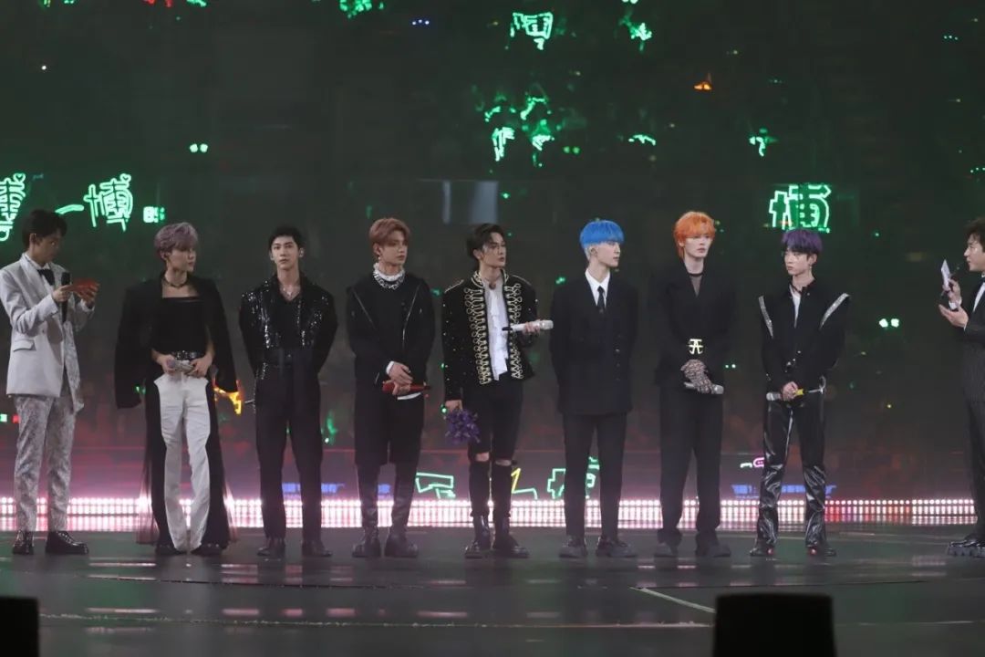 但乐华的演唱会归根结底是个拼盘演出。即便比大部分演唱会多出约50分钟的时长,但要把150分钟的演出时间分派给23组艺人,26首歌曲,每位爱豆的出场时间也就可想而知了。虽然,乐华演唱会门票仅仅用了8秒就被抢购一空。但线下演唱会的消费者是艺人们最核心的粉丝群体,不夸张地说,王一博一人的粉丝就足以吞下所有门票。演出现场,为王一博应援的绿色荧光棒也占据了压倒性的优势,现场几乎就是一片绿海。