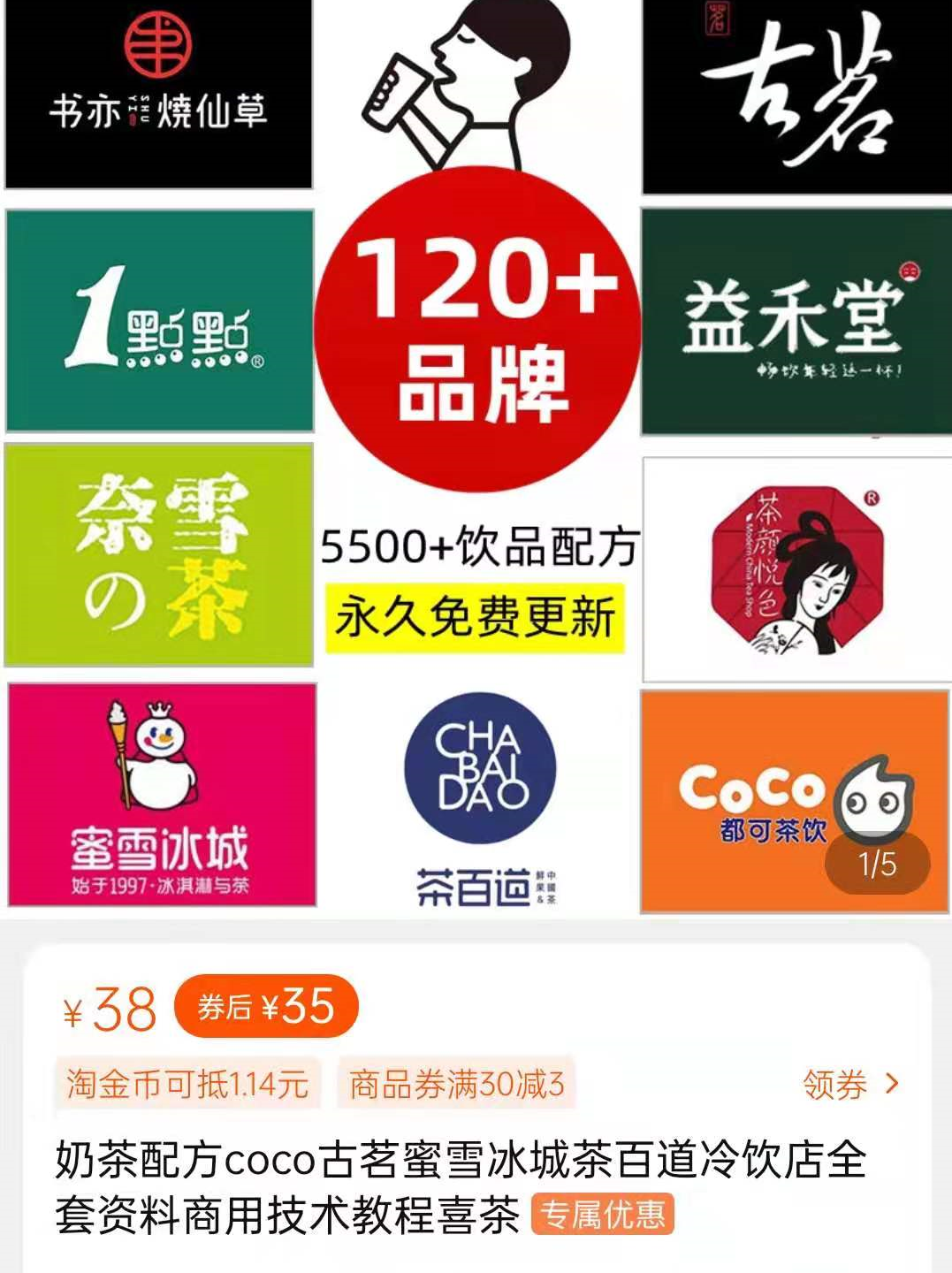某电商平台上,搜索茶饮配方,便有不少商品出现,甚至只需38元便可拿到包括奈雪、茶百道、蜜雪冰城等多个品牌的配方。