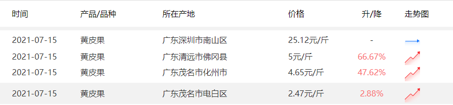 然而有趣的是,黄皮上涨价格远不及油柑。惠农网上,部分地区黄皮价格仍呈平稳趋势,甚至在小部分地区价格也仅仅只有2.47元/斤。