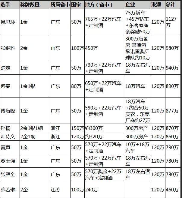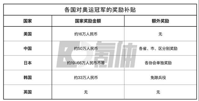 当然,金牌的实际价值对运动员来说,更多的是一种象征意义。与之形成鲜明对比的是,金牌背后所带来的「奖励清单」,这些可能是更让人期待的部分。