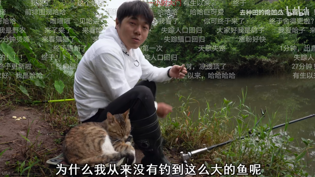 第一次看到钓鱼视频也是在B站,那个UP主去钓鱼会带上一只叫哈哈的猫,猫咪很乖,陪着他一块钓鱼,还总是跟他抢凳子,于是在视频里经常出现UP主本人蹲在河边,猫咪趴在他小马扎上睡觉,一听见水花立刻精神,喵喵喵地要鱼吃,一些小鱼通常都归猫咪,特别有爱。