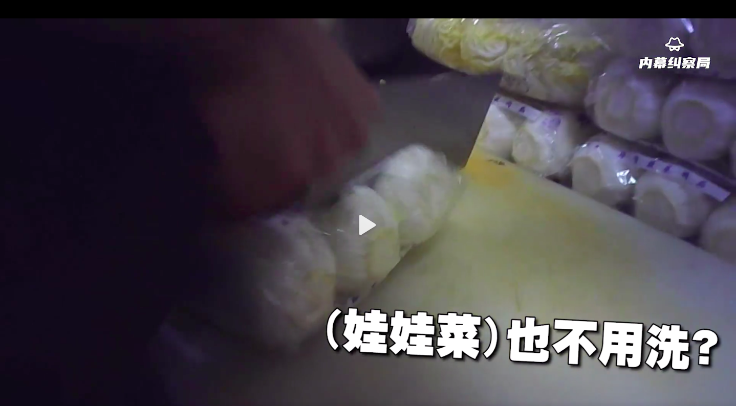 门店打烊后,开放式展示冷藏柜中剩余的食材并没有放入密闭式冰箱内保存。仓库中遍地老鼠屎,袋装芝麻酱被老鼠咬破,店家却称“不管它、直接放”。在清洗环节中,店家也说“娃娃菜不用洗,太难洗了”。