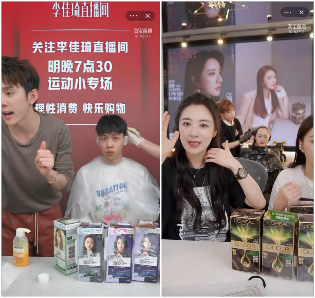 过去三个月,李佳琦共5次推荐染发剂产品,薇娅则推荐了4次——染发剂成为两位主播直播间的常规选品。在他们推荐染发剂时,工作人员都会现场“表演”染发,两位主播则在一旁会说明染发注意要点,比如推荐发色、是否遮盖白发、孕妇是否可用等。
