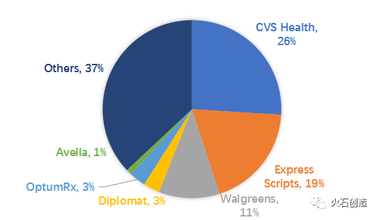 随着大型商保公司控制了超过70%的市场份额,处方集中流向与其合作的PBM再进入到零售药店;同时,PBM自己介入处方药零售,成为继药店之外最主要的处方药零售渠道。以上是造成美国专业药房集中度较高的主要原因。