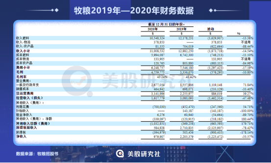 此外,2019年与2020年,牧粮的净利润分别为220.5万美元、98万美元,同比下降55.6%。净利润大幅减少,主要在于2020年总营收减少,而营业费用增加所致。
