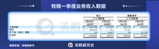 截至2020年3月31日的3个月里,牧粮营收为83.9万美元,其中来自肥料的收入为75.4万美元,来自农产品的收入为8.5万美元;截至2021年3月31日的3个月里,牧粮营收为156.9万美元,其中来自肥料的收入为138.5万美元,来自物流的收入为18.4万美元,来自农产品的收入为119美元。