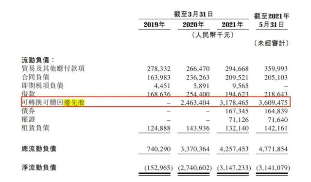 如此一来,可赎回优先股便不得不被指定为以公允价值计量且其公允价值变动计入当期损益的金融负债,截至2021年5月末,可转换可赎回优先股总额为36.09亿元,一季度该金融负债由于公允价值变动减损的企业利润为4.24亿元,已达收入的28%。