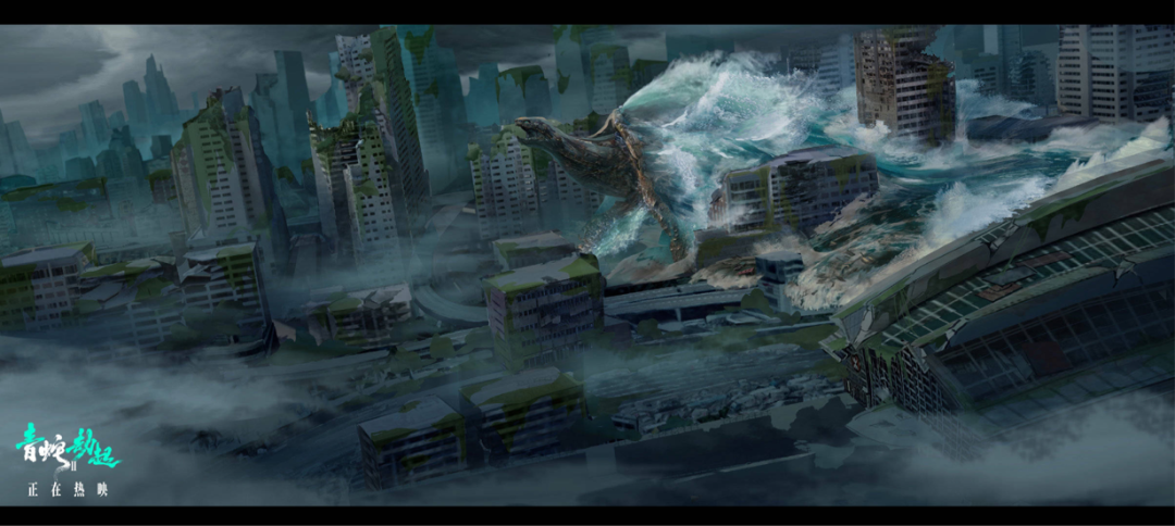 比如故事的主要发生地:修罗城。这是一座活着的城市,建筑风格杂糅古今,既有高楼大厦又有亭台楼宇。在废弃都市丛林里,子弹横飞,机车轰鸣。废土朋克蒸汽朋克与古风山川水墨氤氲混杂,带来传统和现代混合的奇异美感,也为观众带来了超乎想象的视觉享受。在动画视觉特效方面,《白蛇2》毫无疑问做到了国产顶级水平。