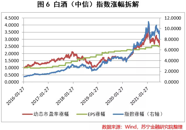 从图5、图6可以看出,中成药、白酒这两个行业在最近1年多的时间内都经历过估值驱动的上涨过程,但最近一段时间以来市场开始了杀估值,白酒中绝对龙头贵州茅台也进入了这样一个阶段。