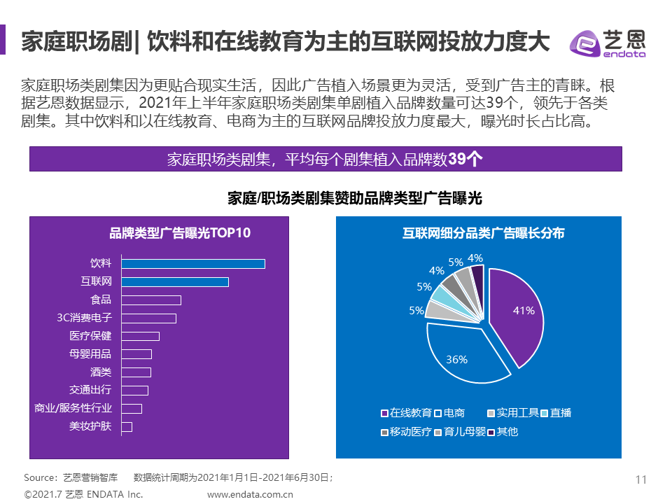 另一大影响可能存在于内容层面。根据艺恩数据,在线教育品牌在综艺领域主要的投入品类是益智、情感和生活,剧集方面的植入则相对集中在家庭职场剧,这部分内容在过去一年中热度提升。尤其是《陪你一起长大》和《小舍得》这两部聚焦家庭教育的话题剧,在今年上半年品牌合作数TOP10分别达到第一和第四。
