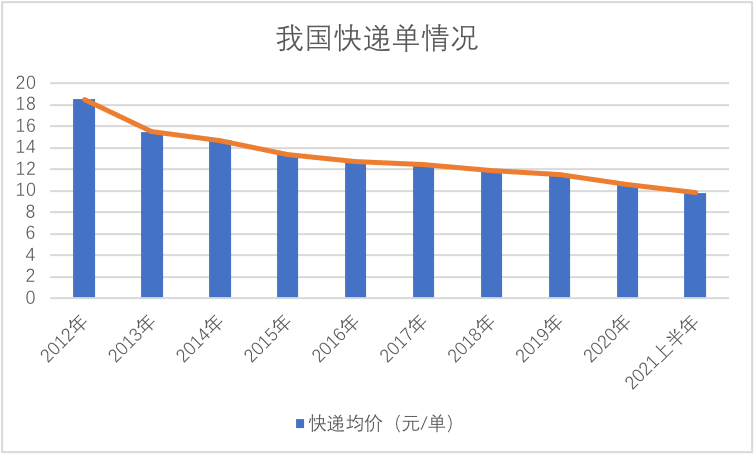 在过去,我国快递单票价格一直在下降区间,其中原因很多,诸如价格战因素,行业经营效率提升,甚至于随着拼多多为代表的低单价平台兴起,也会倒逼快递业价格的回落等等。