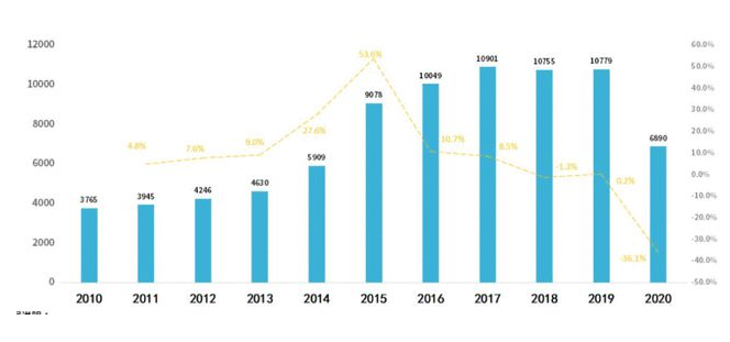 与此同时,相关数据显示,截至2021年3月,我国现存的KTV企业为6.4万家,相较于2014年巅峰时期的12万家已经腰斩。