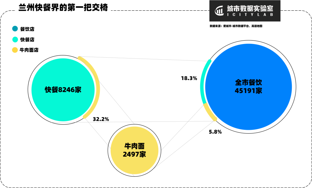 牛肉面馆在所有快餐店中占32%,但每天的就餐人数却达到近常住人口的1/4,牛肉面当之无愧坐着兰州快餐界的第一把交椅。