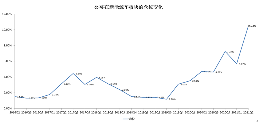 而彼时的机构尽管看好该板块,但并未形成共识,这一点从公募对于新能源车板块的布局上,就能够看出来。