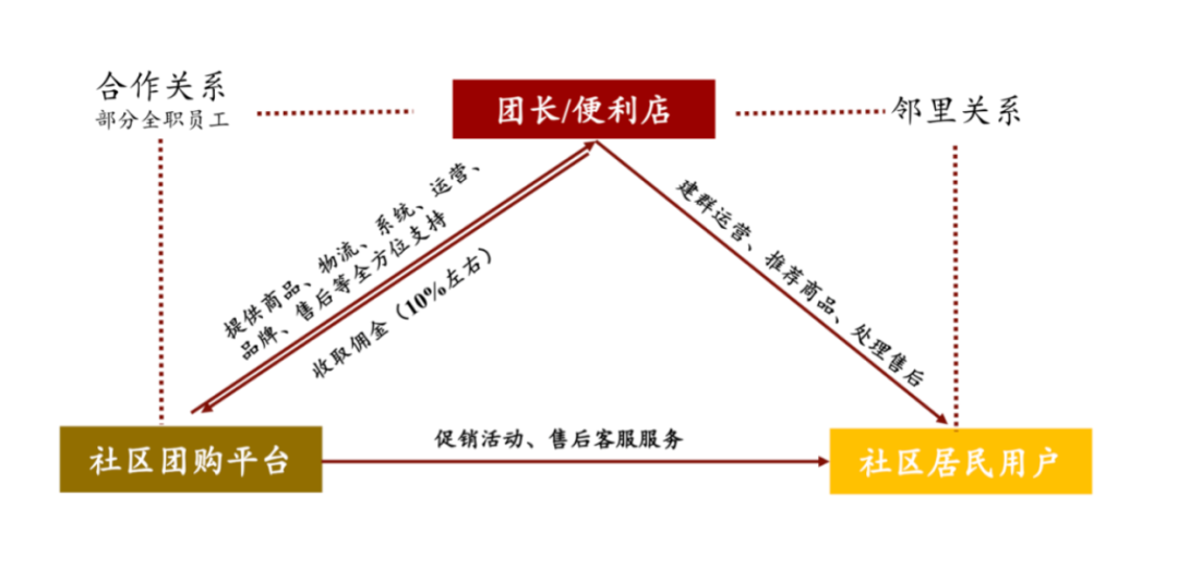 团长是社区团购模式中很重要的环节人物。一般的团长都是由社区内部的业主或者便利店店主担任,与社区民众的熟识度、信任度相对较高,社区居民通过团长与商品链接,与传统电商相比,更加多了一份真诚和信任。