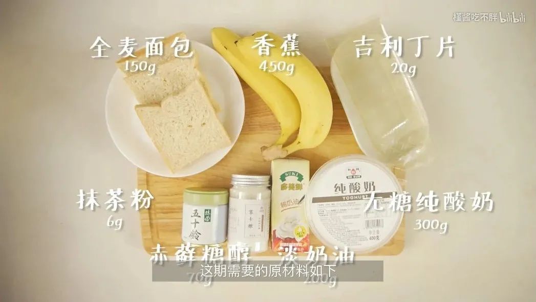 以B站up主槿酱吃不胖发布的《吃蛋糕也能瘦?!低卡美味抹茶酸奶慕斯蛋糕解救你的嘴馋夏天!》为例,其制作的一款抹茶蛋糕所用食材全部考虑了糖分的摄入量:代糖赤藓糖醇、无糖全麦面包、低热量的香蕉、无糖纯酸奶、纯动物奶油。这使得整体的食物热量降低至76卡/100g。