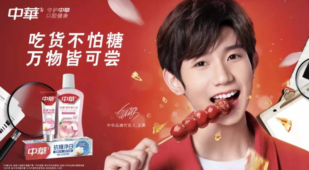 2021年4月份,由王源代言的中华抗糖牙膏上线京东超市,并开启抗糖风暴日分享会、定制“糖葫芦”与签名照、专属神秘惊喜等活动。
