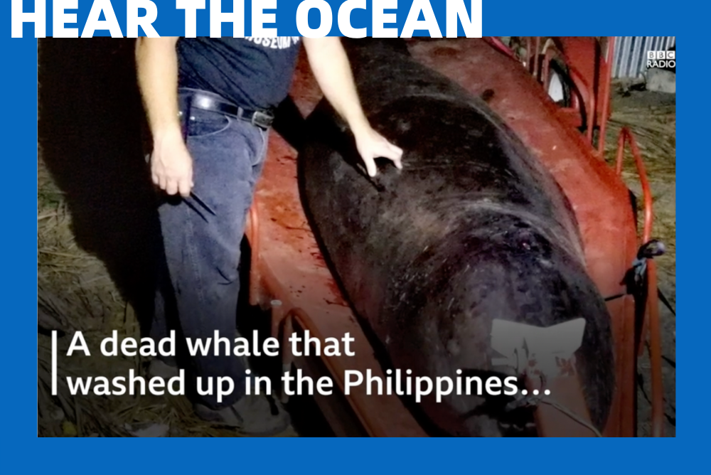 在菲律宾的海湾上,当地海洋组织发现一头瘦弱的鲸鱼在吐血,只能微弱游动。很快这只鲸鱼被冲上岸边死去。