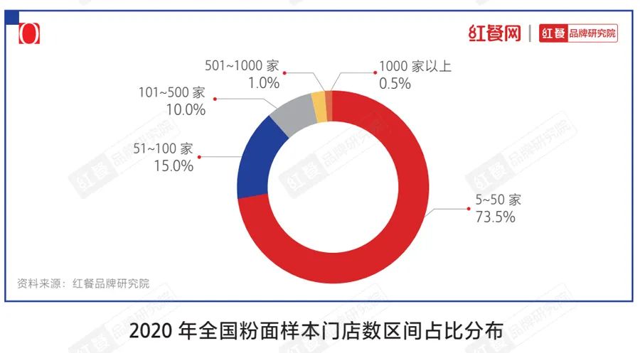 红餐品牌研究院收录的品牌数据显示,在小吃快餐品类中,粉面门店数占比 20.8%,超过米饭快餐 19.1% 的占比,是小吃快餐第一大细分品类。