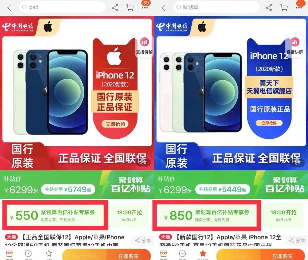 更加令消费者不满的是,聚划算目前仍存在“杀熟”现象。有消费者告诉「新熵」:“今年2月想在淘宝购买手机,却发现同一时间同一件商品,我只有550元的补贴,而我家人手机显示的补贴金额却是850元。”