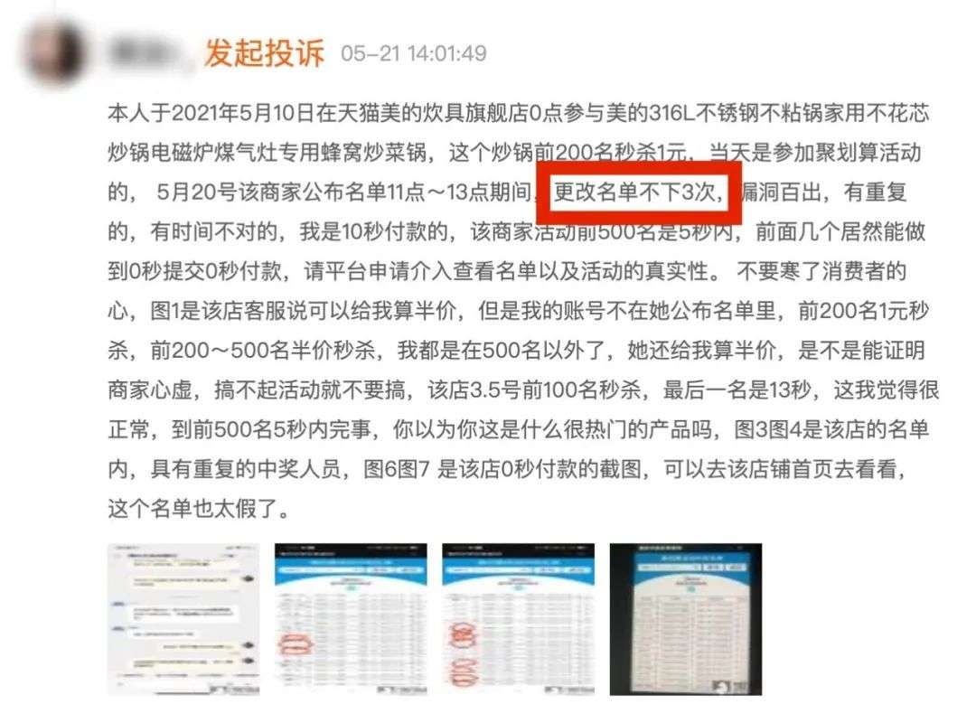 天猫投诉上,消费者质疑商家活动作假并贴出证据