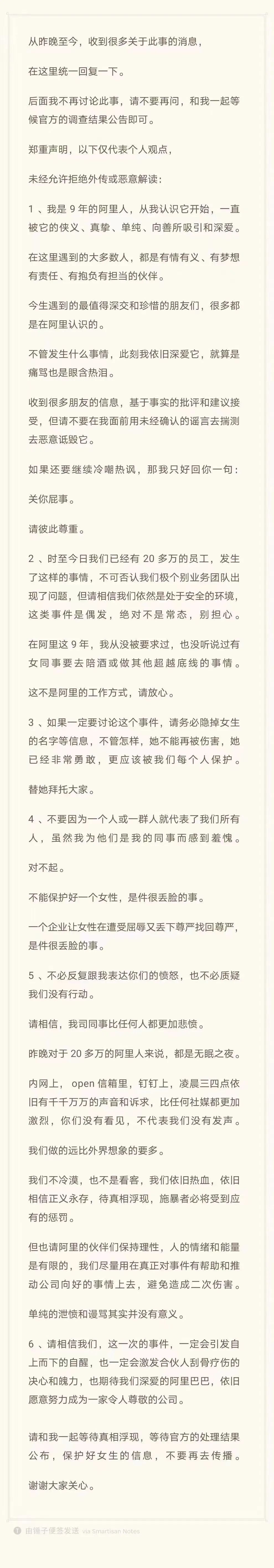 或许,那个阿里9年员工写的话是员工自发行为,但是因为阿里公关的强大,很容易被怀疑是公关行为,通过员工来帮官方说话。