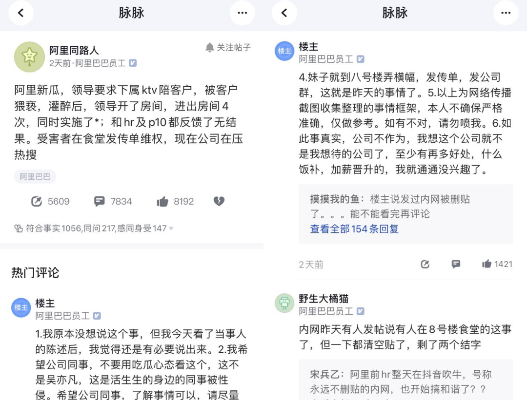 此事经过在脉脉、微博、知乎等社交平台的发酵,以及媒体的跟进报道,8月8日凌晨,阿里董事局主席兼CEO张勇在阿里内网发帖,用“震惊、气愤、羞愧”表达对此次事件的感受。